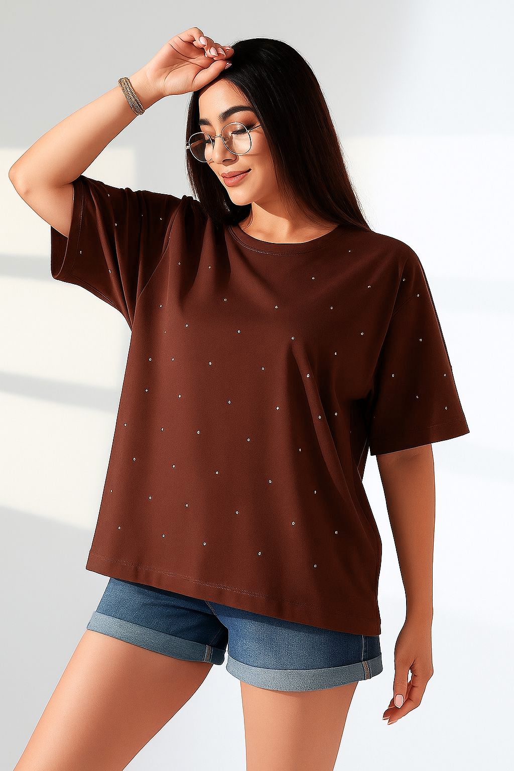 KAHVE TAŞLI KAYIK YAKA T-SHIRT