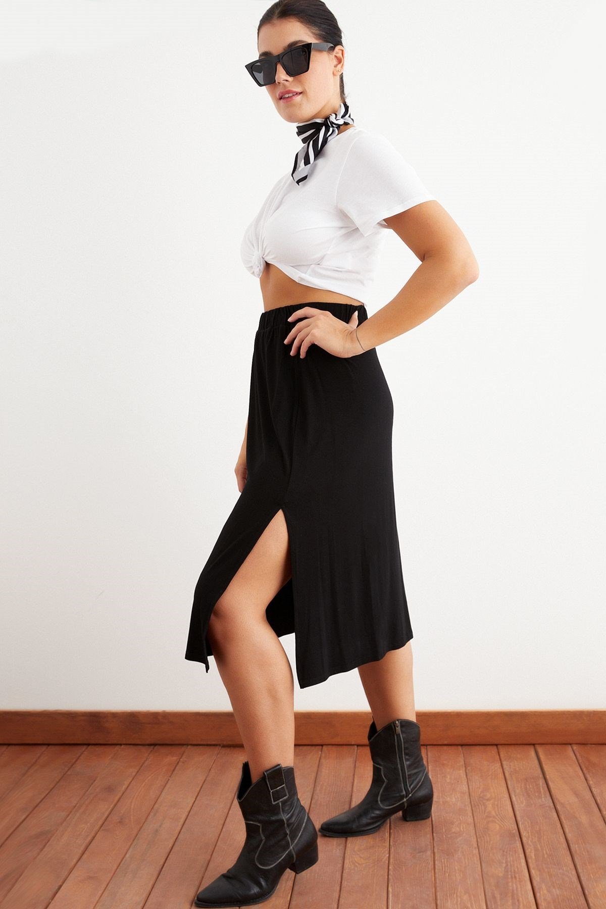 SİYAH YANLARI YIRTMAÇLI ETEK | curly